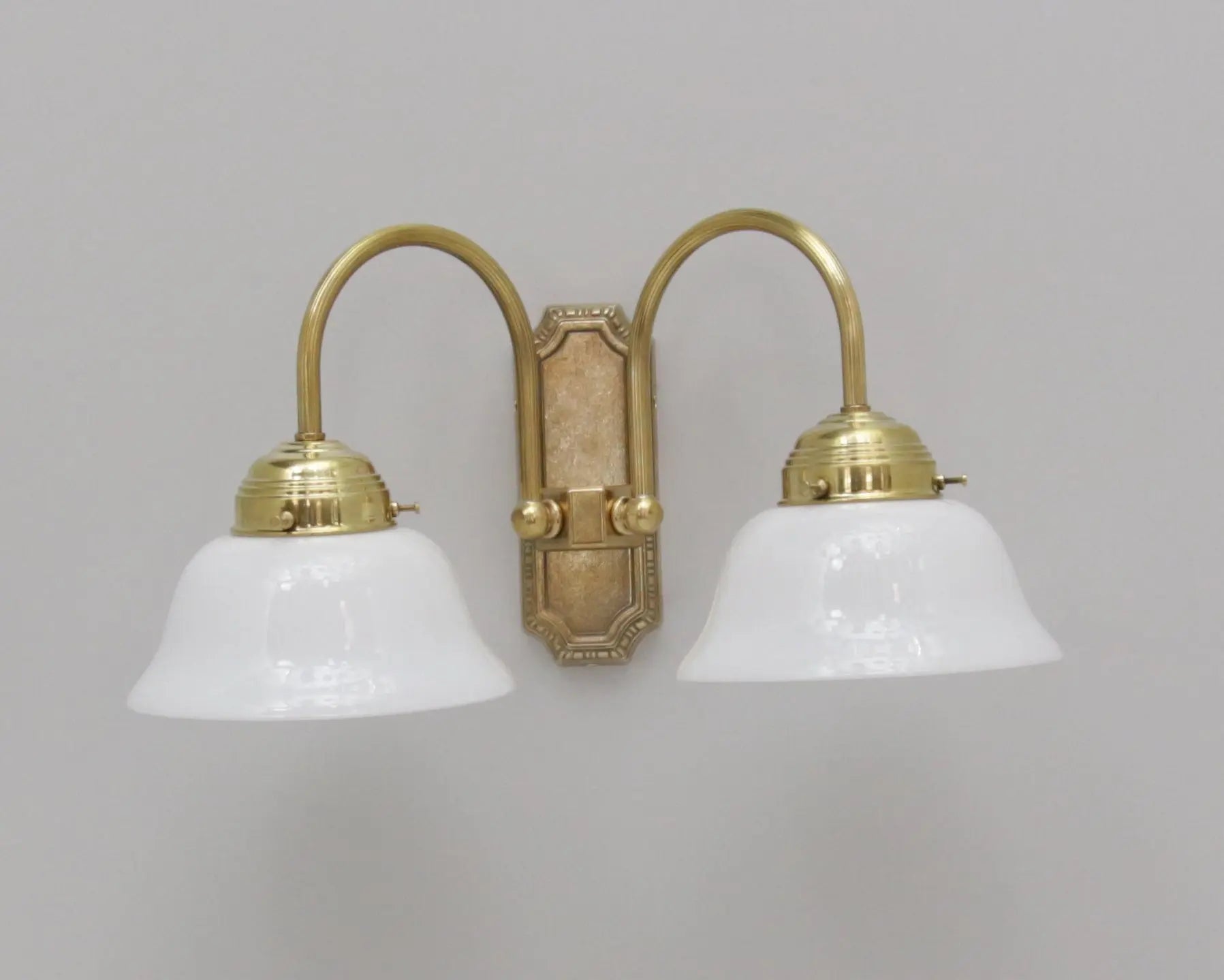 Unsere Opal Wandlampe vereint zeitlose Eleganz mit einem Hauch von Nostalgie. Das Gestell ist in einer Kombination aus antik und Naturmessing gehalten, was einen charmanten Vintage-Look schafft. Die Opal-Glasfarbe verleiht der Lampe eine sanfte Lichtstreuung und schafft eine angenehme Atmosphäre in Ihrem Raum.